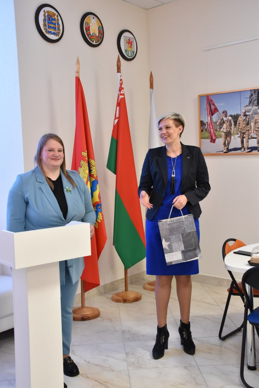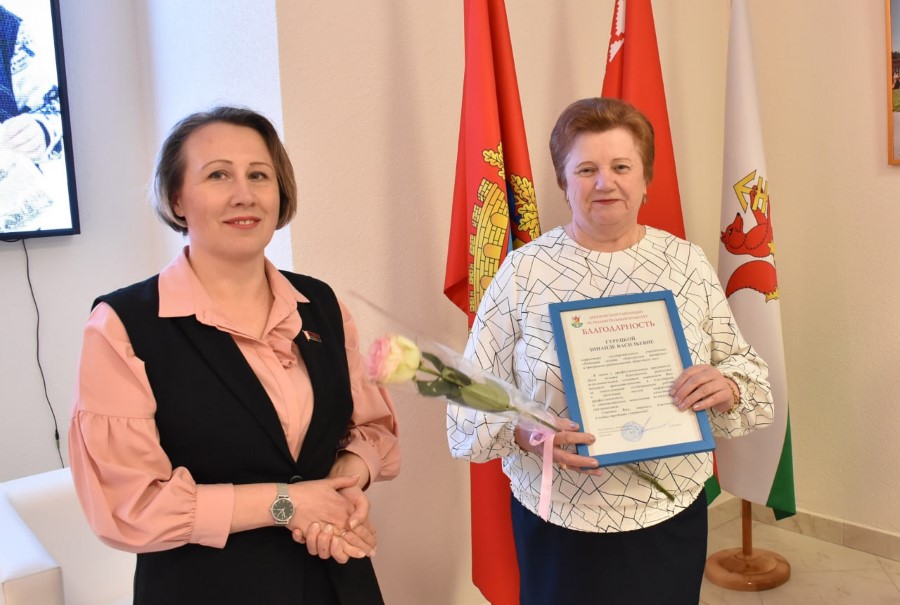 Так, першай да супрацоўнікаў рэдацыі звярнулася намеснік старшыні райвыканкама Вольга Калячка. Акрамя шчырых слоў віншаванняў яна ўручыла падзякі старшыні райвыканкама карэктару рэдакцыі Зінаідзе Гурэцкай і галоўнаму бухгалтару Святлане Афанасьевай.