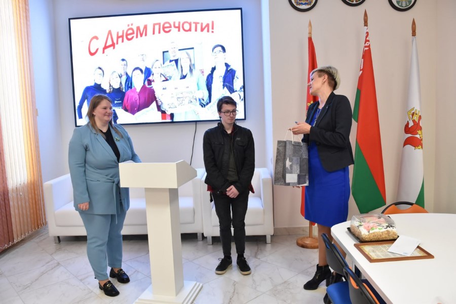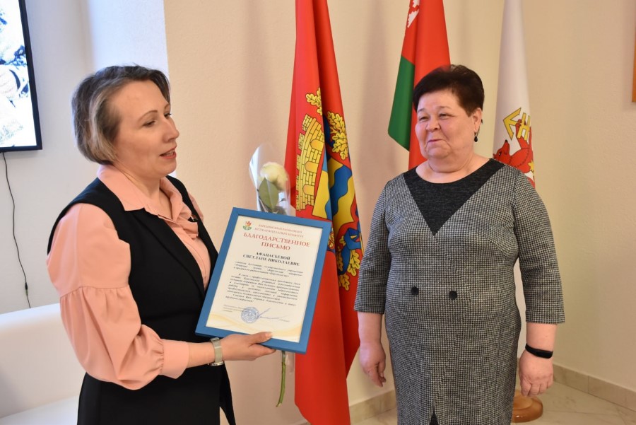 Дарэчы, у Святланы Мікалаеўны сёння была двайная нагода прымаць віншаванні – і з Днём друку, і з днём нараджэння. Віншавала Святлану Афанасьеву і дзячыла за вялікую актыўнай на ніве прафсаюзнага жыцця раёна старшыня райкама прафсаюза работнікаў культуры культуры, інфармацыі, спорту і турызму Наталля Дубовік, уручыўшы ёй грамату галіновага абкама прафсаюза.