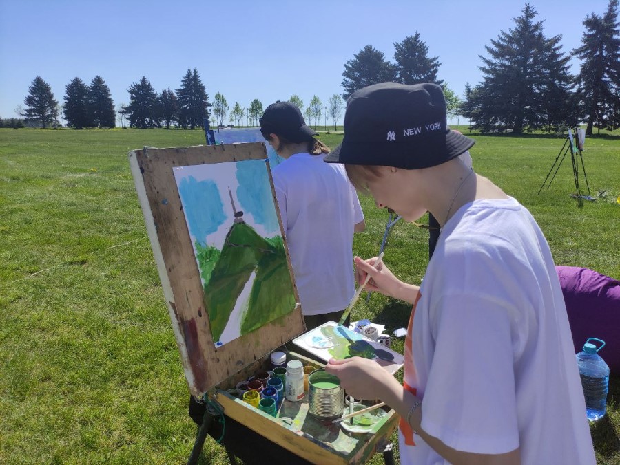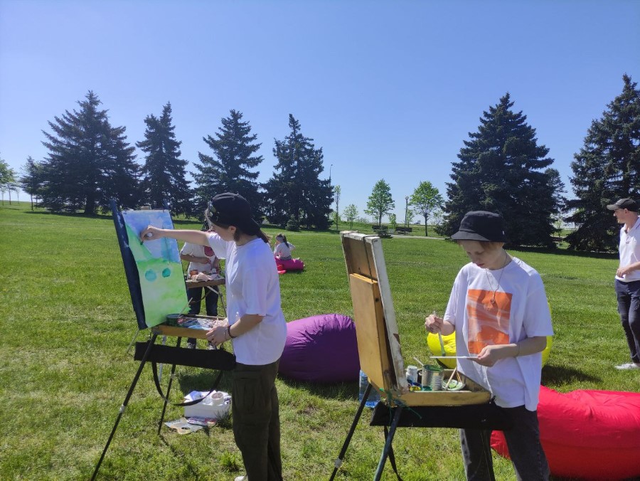 А учащиеся школы искусств устроили вот такой необычный пленэр! Прямо сейчас рисуют Курган Славы!