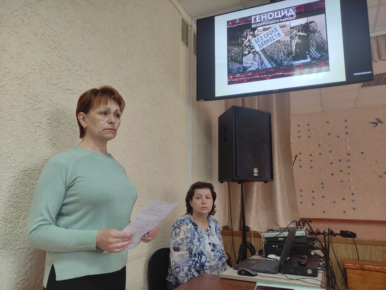 Основная тема - историческая память о Великой Отечественной войне как фактор формирования патриотизма. Подробнее рассказала про геноцид белорусского народа в годы войны методист отдела маркетинга и социокультурной деятельности Виктория Богодяж.