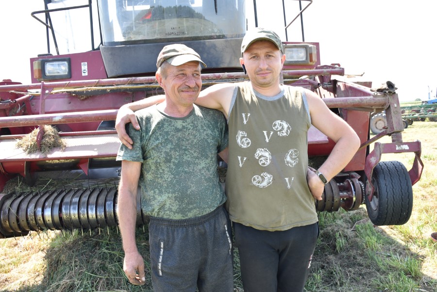 Не ведаюць стомы і перапынкаў у рабоце механізатары і вадзіцелі, якія заняты гэтай стратэгічна важнай для гаспадаркі справай, бо ад тэмпаў, старання і ўмення цэлага ланцужка спецыялістаў залежыць будучая сытая зімоўка жывёлы і паказчыкі малочнай і мясной галін. Першымі ў справу ўступаюць механізатары Генадзь Гушчын і Сяргей Аўсянскі. Іменна яны кладуць у пракосы траву і забяспечваюць аб’ём работы астатнім членам звяна па нарыхтоўцы кармоў.
