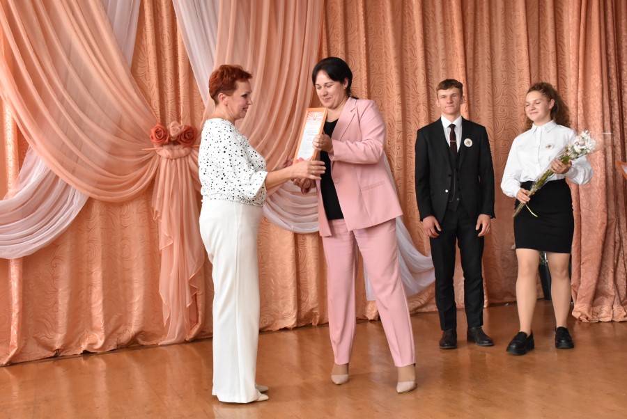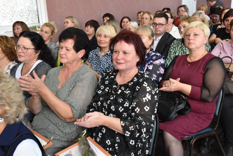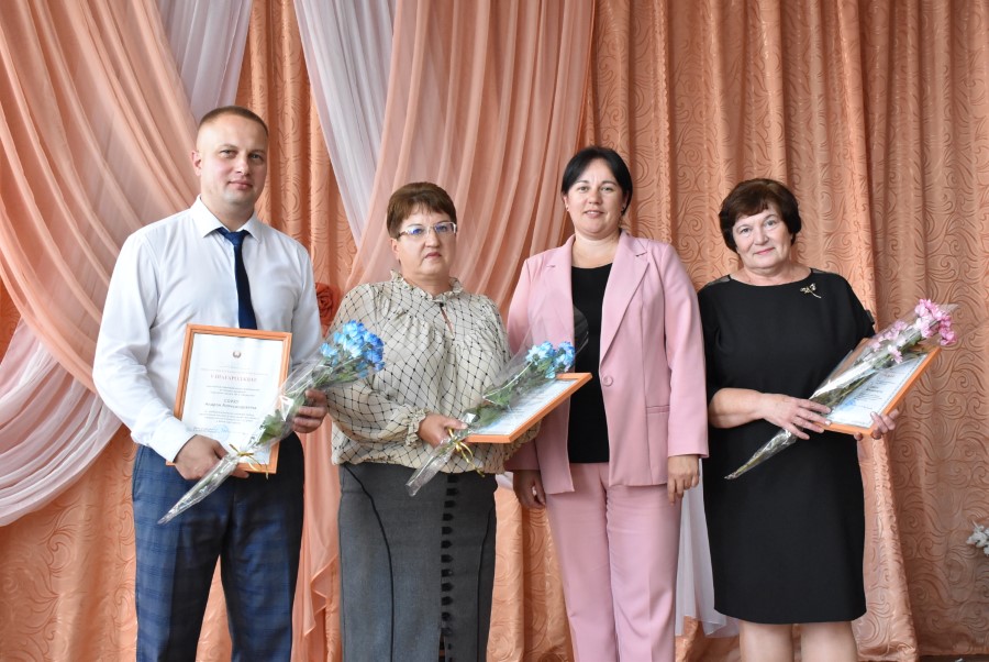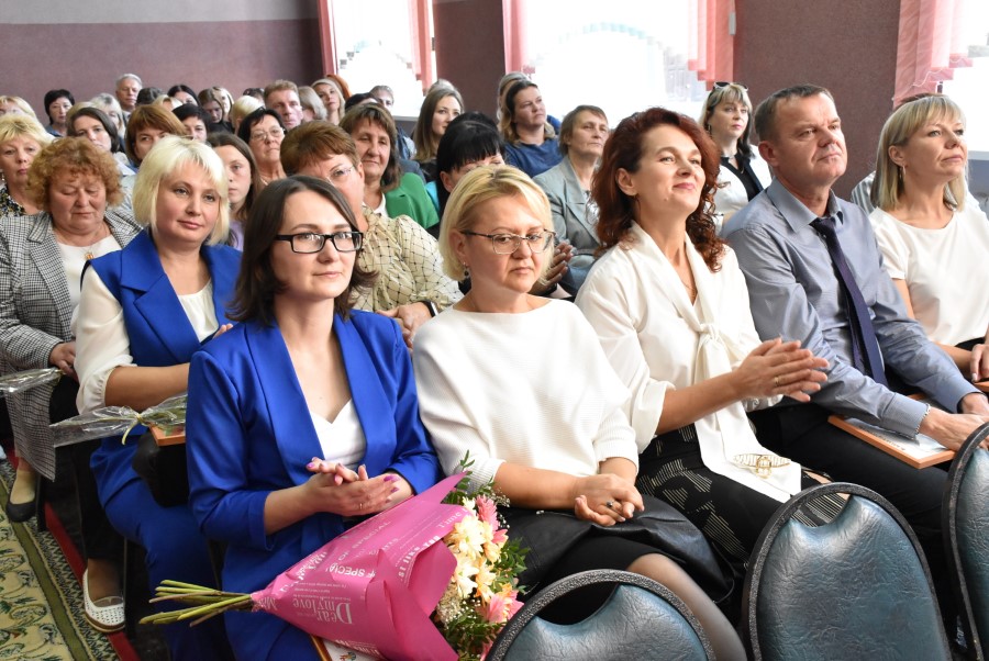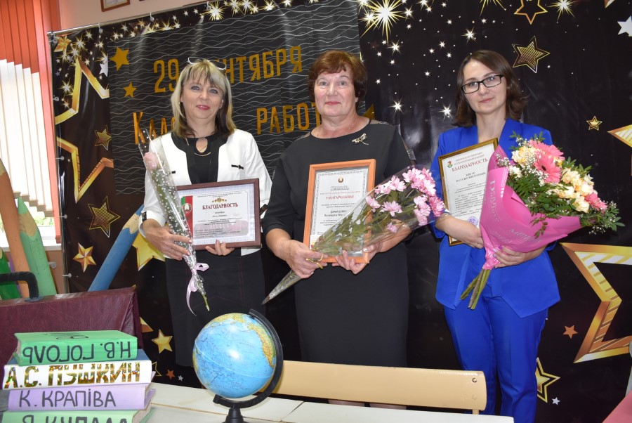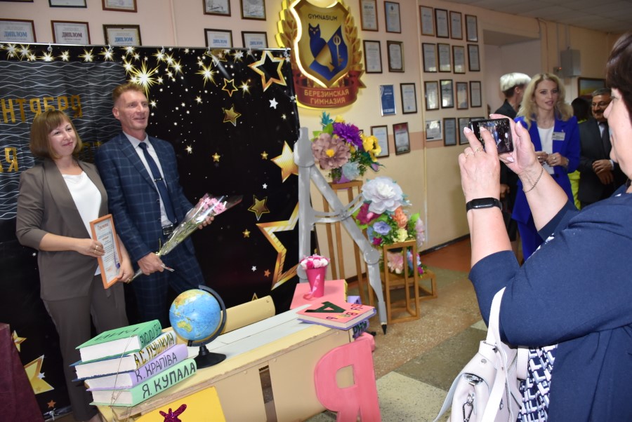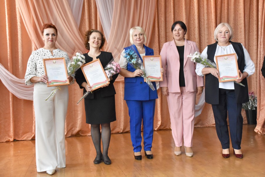 В зале собрались виновники торжества и почетные гости председатель районного Совета депутатов Виктор Лашковский, заместитель председателя райисполкома Ольга Колячко, начальник управления по образованию спорту и туризму Алеся Титова, председатель райкома профсоюза работников образования и науки Людмила Толкач, главный специалист райсовета Татьяна Милько, первый заместитель начальника Березинского РОЧС Дмитрий Анципов и первый секретарь РК БРСМ Екатерина Аврамчик.