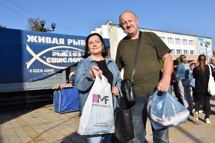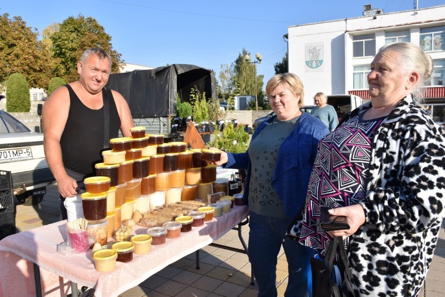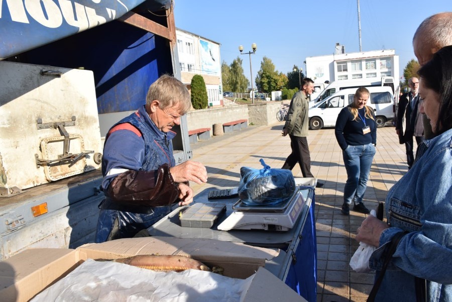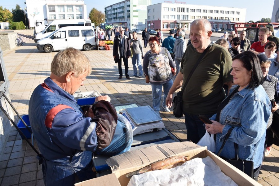 Сегодня с девяти часов утра на городской площади и шла активная торговля. Наиболее востребованными оказались зерно (пшеница) от ОАО «Богушевичи» и рыба, которой торговали представители рыбхоза «Свислочь». Именно возле этих машин было больше всего покупателей, которые выстраивались в очереди. Большим спросом у березинцев пользовались также картошка, капуста, лук, морковь и другие овощи. Посетителям ярмарки предлагались также и декоративные растения и цветы для украшения подворий. Торговля была организована более чем в десяти точках и товар каждой из них был востребован, вызывал живой интерес покупателей. Поэтому никто в этот день не возвращался домой с пустыми руками.