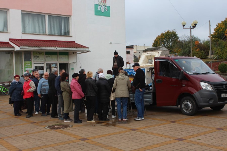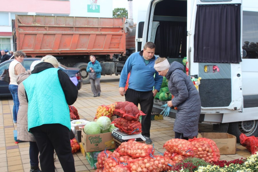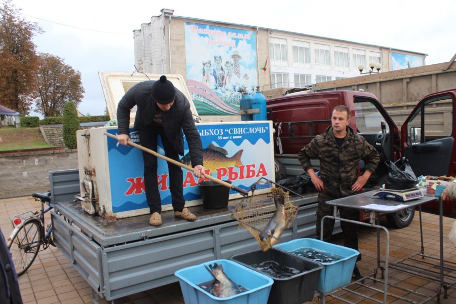 Торговля бойко шла почти до обеда, и даже дождик не помешал. Отдельная очередь выстроилась за свежей рыбой от рыбхоза «Свислочь». Торговали представители частных хозяйств со Столина Брестской области. Отметим также районный центр обеспечения деятельности бюджетных организаций, который предоставил транспорт в помощь людям для доставки сельскохозяйственной продукции, приобретенной на ярмарке.