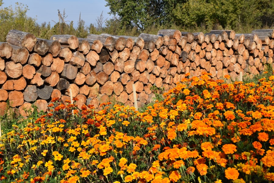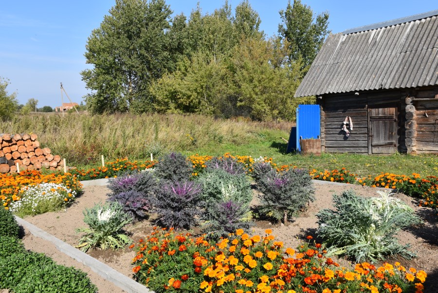 Замечаем, что около дома очень много цветов. Буквально все утопает в зелени.