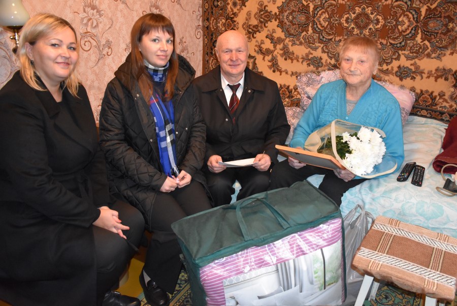 Каб павіншаваць яе з такой знамянальнай датай, з кветкамі і падарункамі завіталі шаноўныя госці – старшыня раённага савета ветэранаў Анатолій Зябко, старшыня раённага камітэта прафсаюза АПК Марына Каўзуновіч і старшыня пярвічнай прафсаюзнай арганізацыі ААТ “Пагосцкі” Крысціна Паддубская.