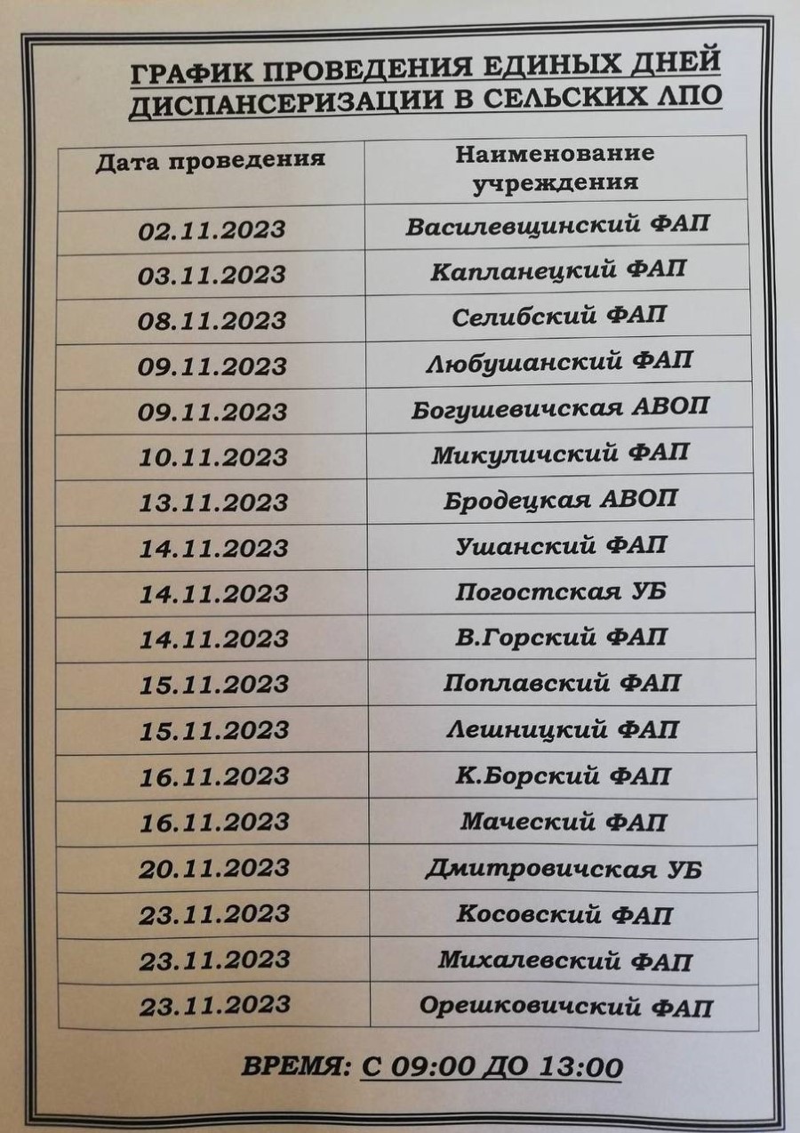 График проведения в ноябре диспансеризации в сельских ЛПО