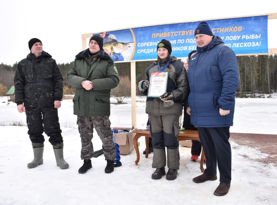 Среди девушек удача улыбнулась Марине Досуговой. Её улов был признан самым большим уловом среди девушек. А самую маленькую рыбку весом 8 грамм поймал Святослав Курневич, он и стал победителем в номинации “Самая маленькая рыбка”. Среди руководителей самую большую рыбку поймал Дмитрий Мешалкин (лесничий Бродецкого лесничества), а самая маленькая рыбка досталась Алексею Андреенко (лесничий Березинского лесничества).