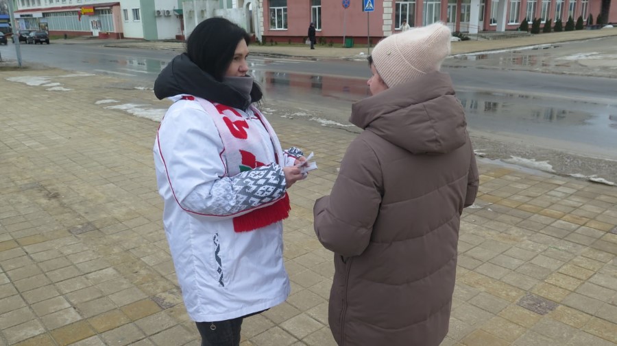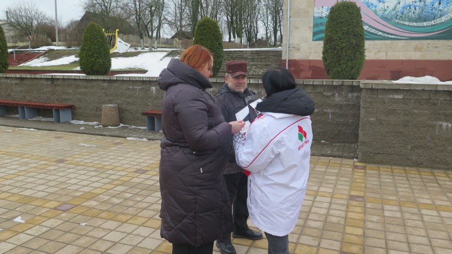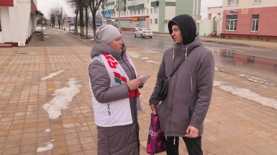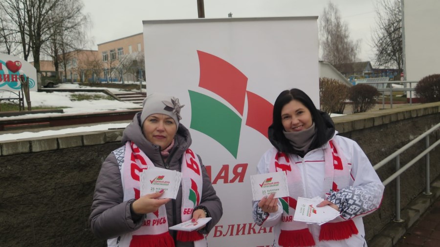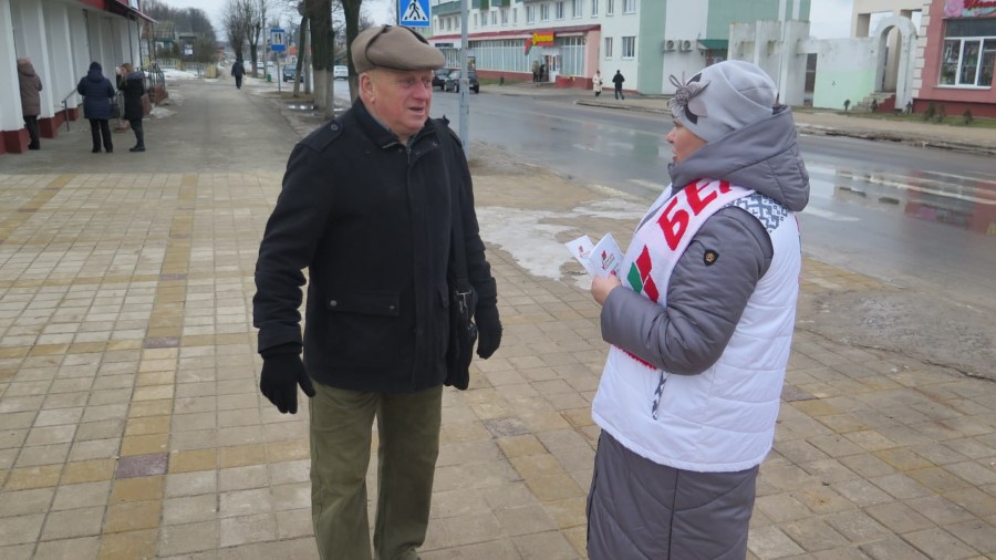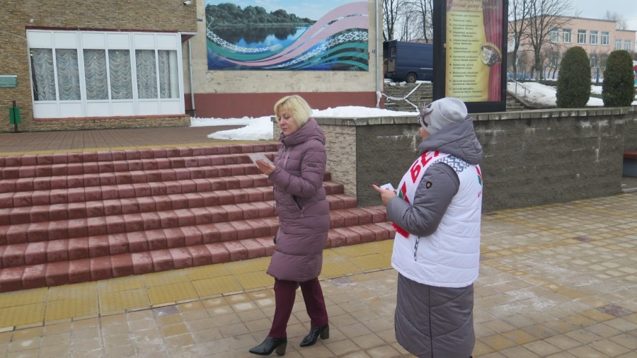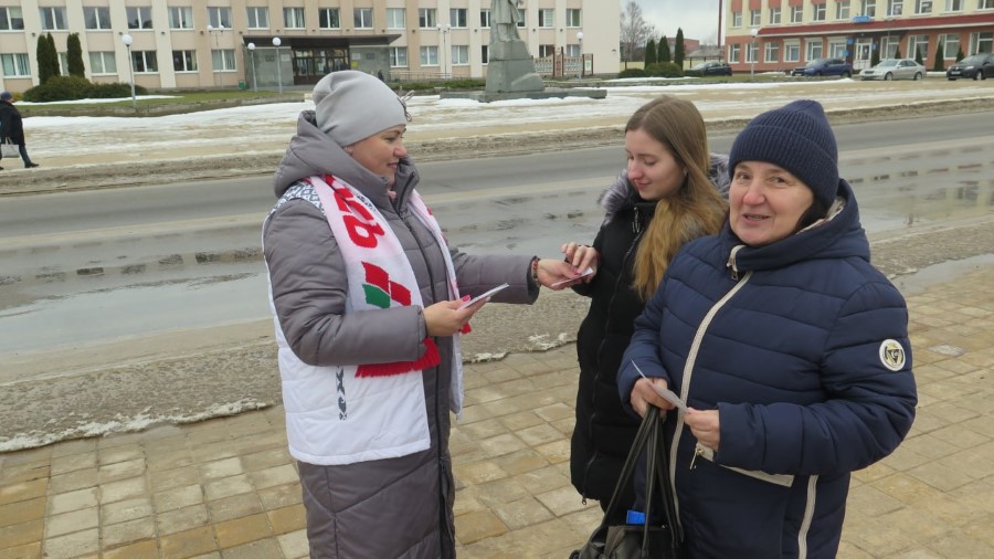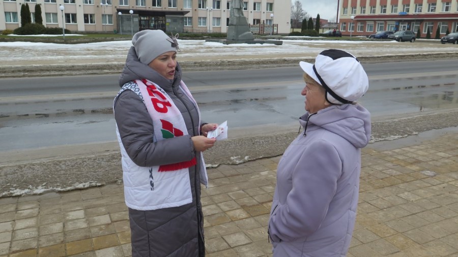 Накануне единого дня голосования продолжаются пикеты на городской площади. Сегодня, 15 февраля, принять участие в выборах приглашали председатель районной организации «Белая Русь» Елена Кушнер и Анастасия Кривель, инженер-теплотехник государственного учреждения «Березинский районный центр по обеспечению деятельности бюджетных организаций».