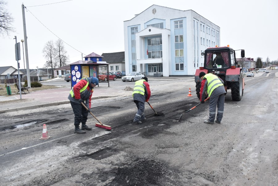 Займаюцца ім работнікі РКУВП «Бярэзінская ЖКГ” на чале з брыгадзірам Юрыем Каныгіным. Зараз работы вядуцца па вуліцы Камсамольскай. Фота Алены ГРОМАВАЙ.