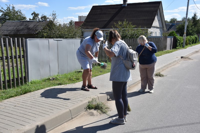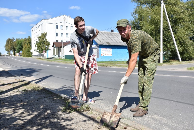 Да и на другом конце города также во всю шла работа. Например, на улице Марии Романович недалеко от магазина “Мяско” уличные ограждения окрашивали работники Березинского ЖКХ. Переулок Школьный благоустраивали работники Березинкого районного центра по обеспечению деятельности бюджетных организаций, которые еще до этого успели “засветиться” на улице Комсомольской. Активно орудовала лопатами и мужская сборная команда представителей Березинского участка электросвязи недалеко от своей резиденции на улице Марии Романович.