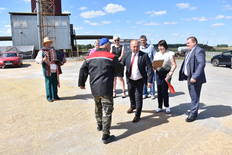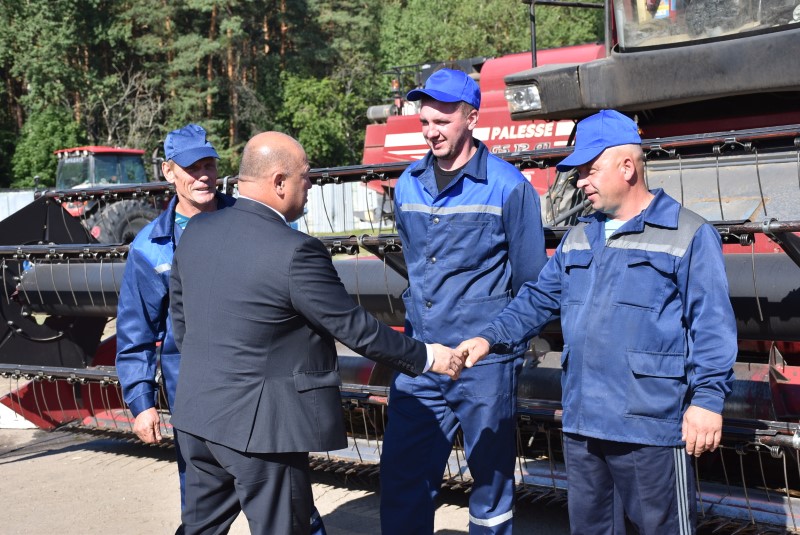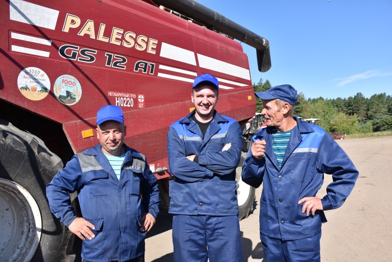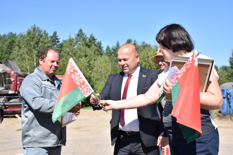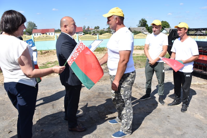 Но по порядку. Сегодня почётный торжественный маршрут начался с хозяйства “Бродец”. Затем были  “Погостский”, “Первомайский”, “Березинский райагросервис”. Поздравительные слова звучали героям жатвы от председателя Березинского райисполкома Андрея Соколовского, первого заместителя, начальника райсельхозпрода Олега Лапытько, начальника отдела идеологической работы, культуры и по делам молодежи Натальи Жуковской, председателя райкома профсоюза работников АПК Марины Ковзунович, первого секретаря РК «БРСМ» Екатерины Аврамчик и руководителей  хозяйств – Александра Крука, Сергея ЛобачаЮрия Костюка, Александра Автухова.
