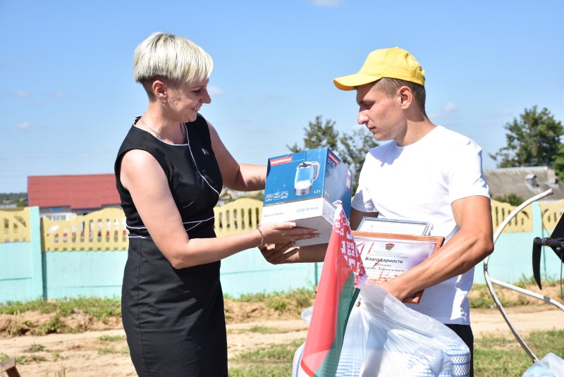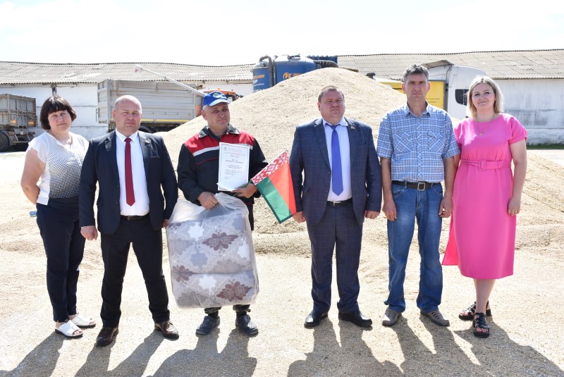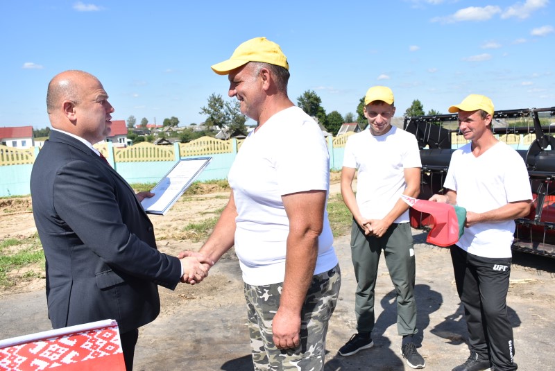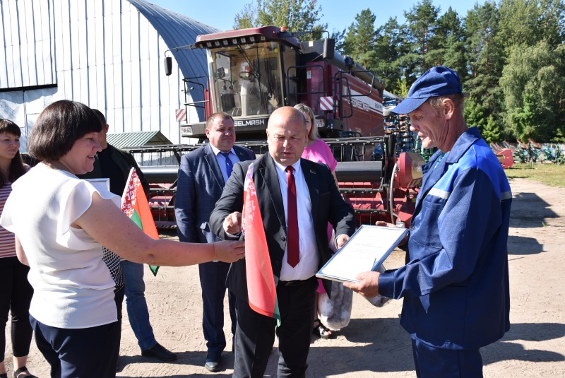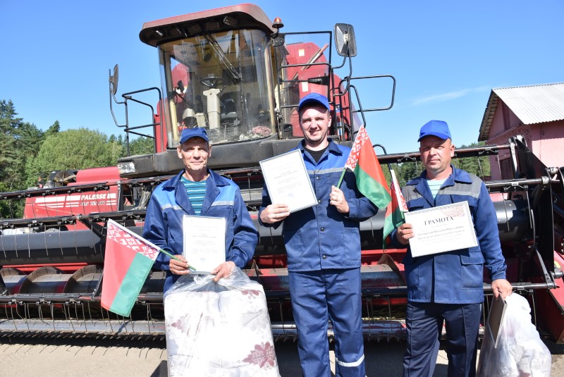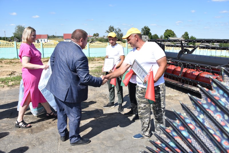Героям жатвы, среди которых Александр Книга, Виталий Овсянский, Андрей Гарбузов (“ОАО “Бродец”), Виталий Семашкевич, Александр Зязюля, Александр Ермолович, Андрей Жуковский (ОАО “Погостский”), Игорь Абмётка, Валерий Шукан, Владимир Рафалович (ОАО “Первомайский”), Дмитрий Драгун (ОАО “Березинский райагросервис”), были вручены благодарности Березинского райисполкома, подарки, материальные вознаграждения, сувениры с государственной символикой.