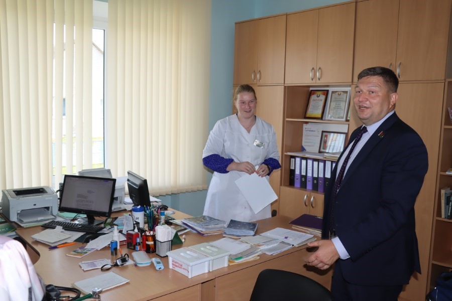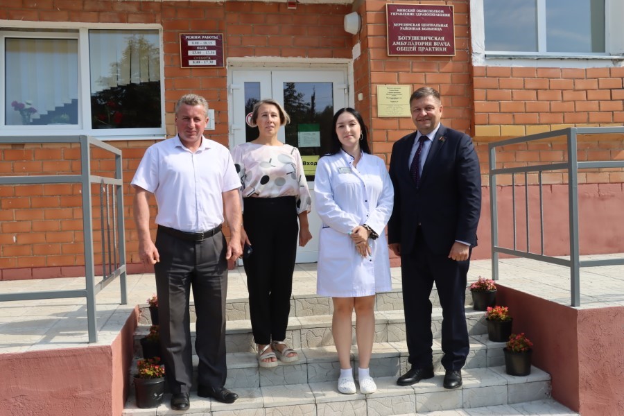 Далее Юрий Корсик посетил Богушевичскую амбулаторию. Гостей встретил коллектив медработников во главе с заведующей Анастасией Костиной.