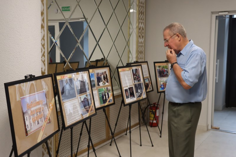 В фойе каждый из гостей ознакомился с выставкой, посвящённой истории библиотеки и её будням.