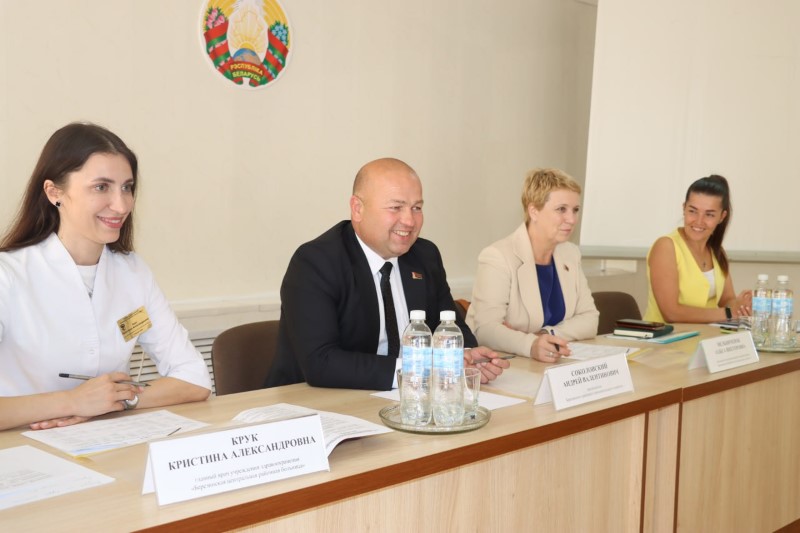 Сегодня с молодыми медицинскими работниками встретился председатель Березинского райисполкома Андрей Соколовский, начальник отдела организационно-кадровой работы Ольга Мельничёнок, главный специалист отдела идеологической работы, культуры и по делам молодежи Галина Соколовская, главный врач ЦРБ Кристина Крук.