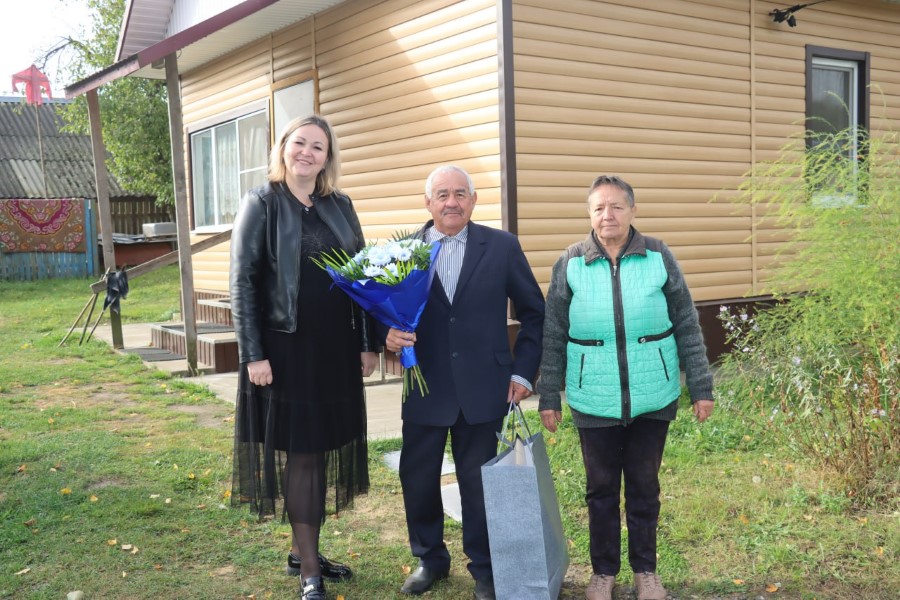 В честь Дня пожилых людей его сегодня чествовали председатель райкома профсоюза работников агропромышленного комплекса Марина Ковзунович и диспетчер ОАО «Погостский» Анна Бондарчик, а заодно подзарядились от Михаила Николаевича добрым зарядом позитива.