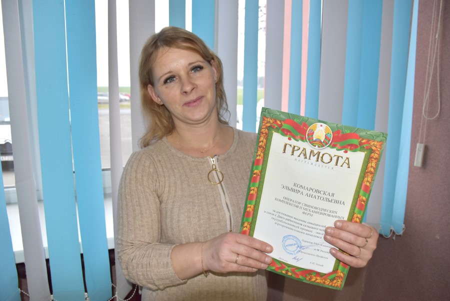 Среди награждённых за достижение высоких показателей в работе – операторы свиноводческих комплексов и механизированных ферм – Алла Сусекова, Инна Макарова, Елена Кашлачёва, Наталья Желнерович, Светлана Ладутько, Наталья Бакунович, Елена Грузд, Наталья Цедрик, Ирина Жуковская, Эльвира Комаровская, Наталья Кот, Янина Барауля, оператор по искусственному осеменению животных Жанна Магильницкая, слесарь-ремонтник Михаил Цыбульский, электромонтёр Дмитрий Толкачёв, тракторист Анатоль Король, формовщик колбасных изделий Надежда Голочева, дезинфектор Евгений Слабко, продавец Ольга Аликевич, повар Мальвина Винник.