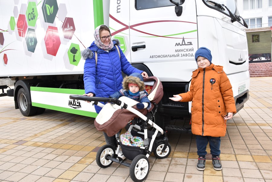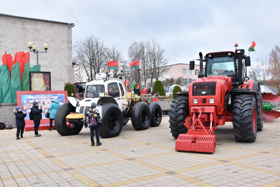 Некоторая техника была представлена на площади. Особенно всех удивил электромобиль. Он есть в «АгроМАЗ».