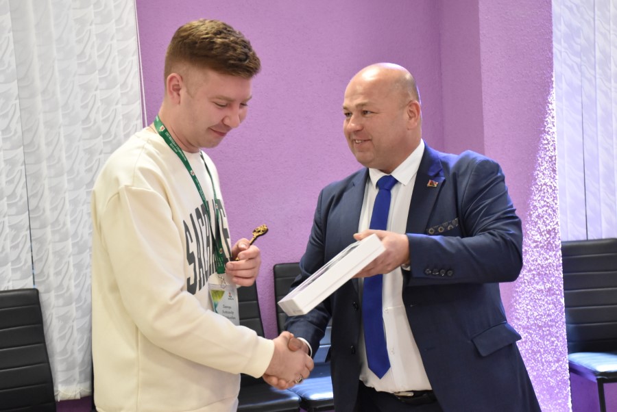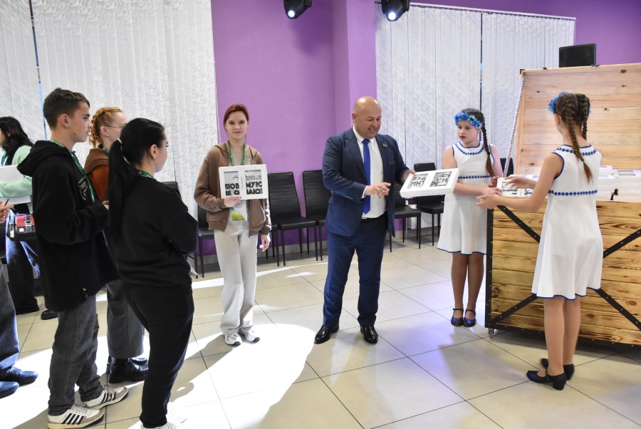 На память о встрече глава района Андрей Соколовский каждому участнику мероприятия сделал подарок – мерч «Первого».