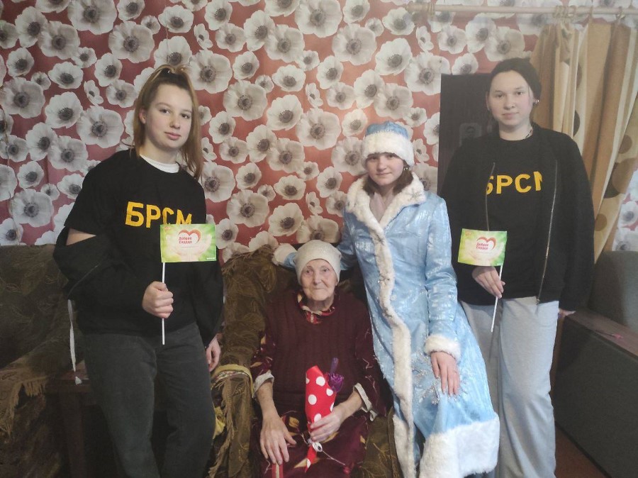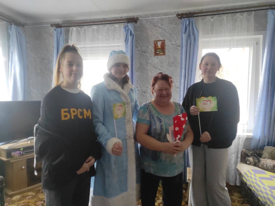 Волонтерский отряд БРСМ присоединились к марафону добрых дел «От всей души» продолжают поздравлять с праздниками одиноких и одиноко проживающих граждан пожилого возраста: Булойчик Т.Н., Волчкова О.А., Кунцевич Т.В, Толкач Л.И., Давидович В.В.