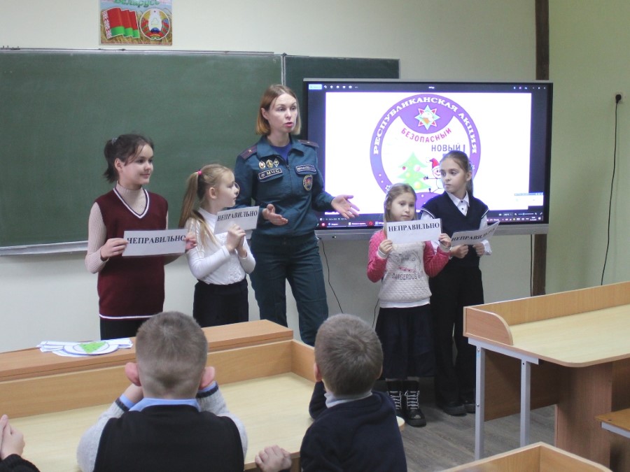 Не абыходзім бокам і тэму гібелі людзей на вадаёмах зімой. Карысныя падарункі ад ратавальнікаў – без гэтага ніяк! Радуе, што дзеці выдатна ведаюць адказы на ўсе пытанні. Асноўная ж задача ратавальнікаў – не толькі навучыць новым і карысным ведам, але і пастаянна нагадваць дзецям пра абсалютную каштоўнасць жыцця чалавека.