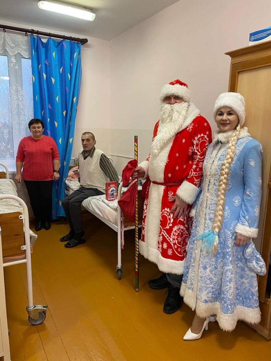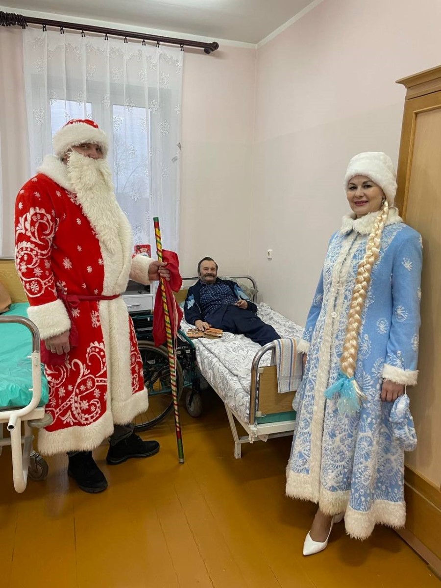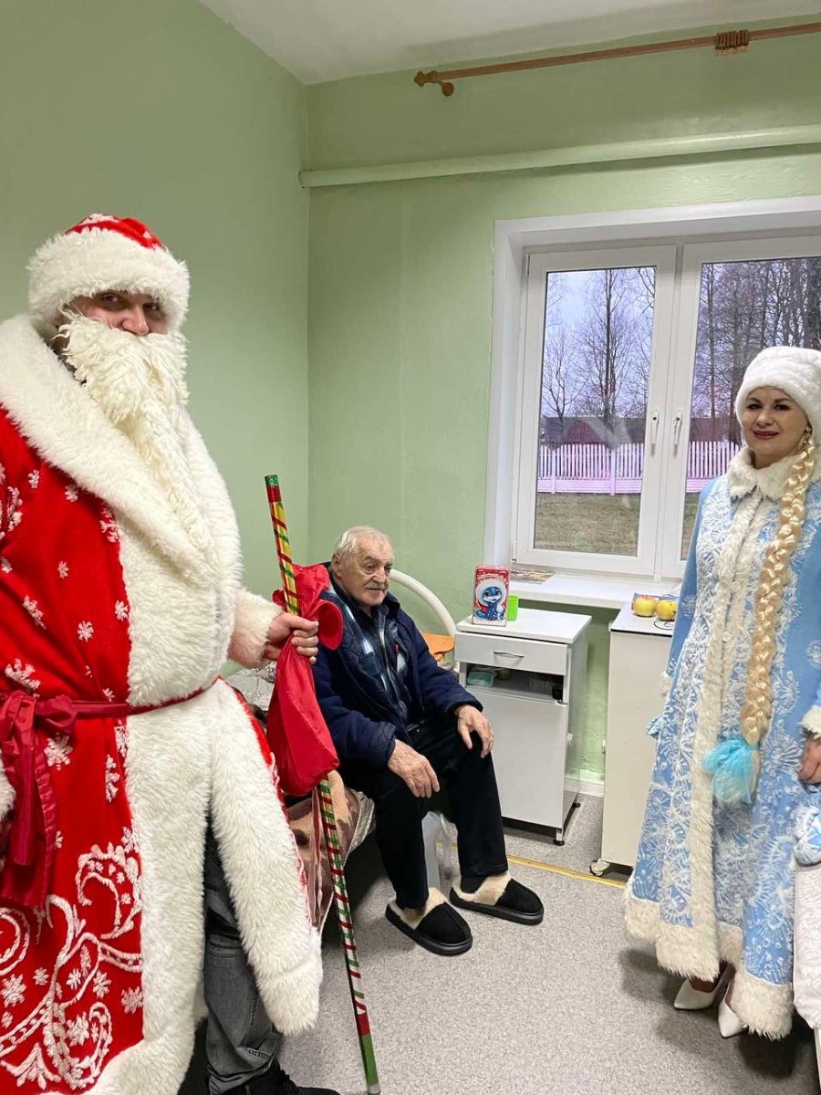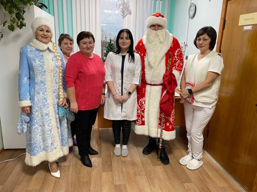 Профсоюз Березинской ЦРБ во главе с председателем комитета Вайнилович Ириной совместно с Дедом Морозом и Снегурочкой поздравили с наступающим Новым годом пациентов Дмитровичской и Погостской участковой больниц