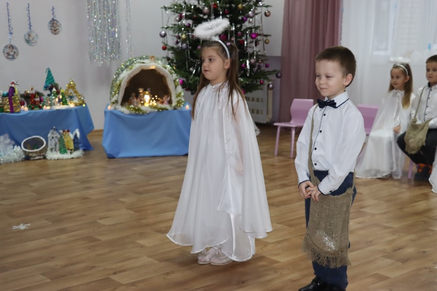 Дети рассказали стихи, танцевали, показали рождественскую постановку на тему евангельских событий, а затем поздравили взрослых с Рождеством Христовым. Отец Илья вручил детям подарки и сказал много хороших наставительных слов в честь праздника.