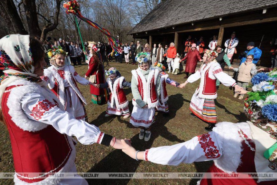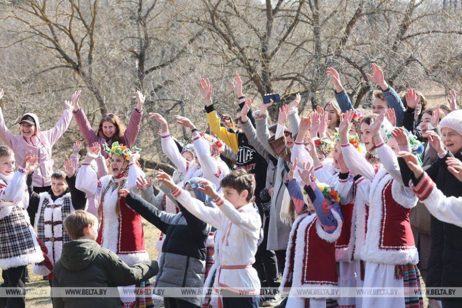 Абрад "Гуканне вясны" ад Новінскіх артыстаў суправаджаўся песнямі-вяснянкамі, карагодамі, заклічкамі, гульнямі і майстар-класамі па ДПТ і па побытавых танцах Бярэзіншчыны.