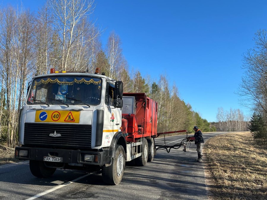 Ведется ямочный ремонт дороги в направлении Бродца