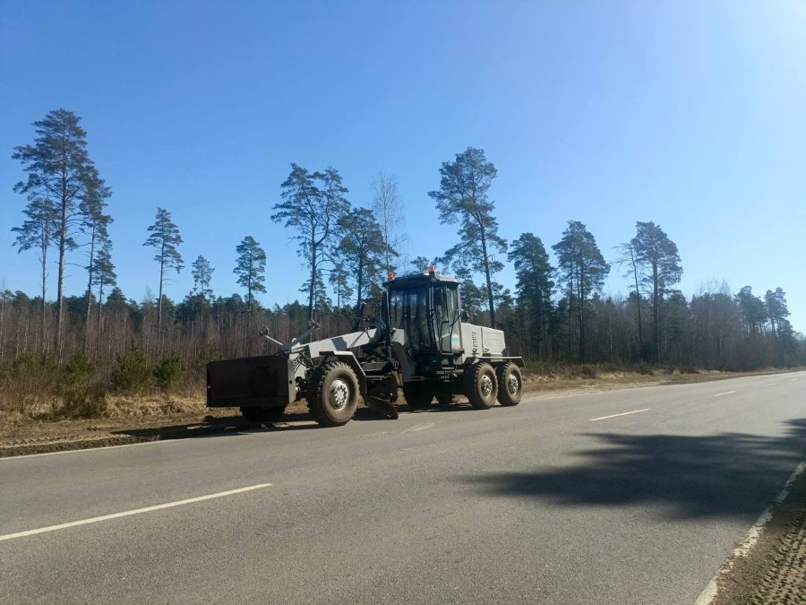 Работники ДЭУ-6 проводят профилирование обочин по р67 и устанавливают новые остановочные павильоны