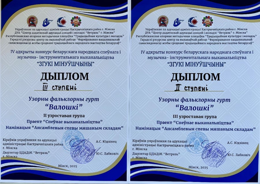 Скарбонка ўзнагарод калектыву папоўнілася дыпломамі ІІ і ІІІ ступені. Кіраўнік Святлана Клімовіч атрымала Падзячны ліст за асабісты ўклад у захаванне і папулярызацыю беларускай традыцыйнай мастацкай творчасці.