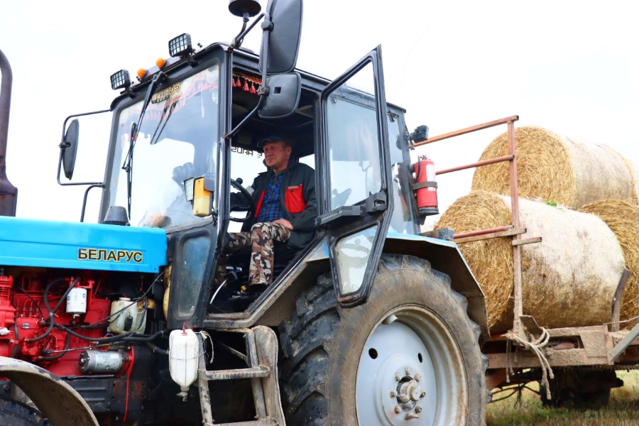 На полях, неподалеку от д. Дулебы отвозкой соломы занят Станислав Цедрик.