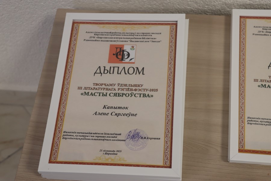 Удзельнікі фэсту – аматары прыгожага пісьменства і дзелавыя партнёры Бярэзінскай цэнтральнай раённай бібліятэкі па рэалізацыі праекта адзначаны дыпломамі. Літаратары пакінулі ў падарунак для бібліятэкі кнігі з аўтографамі.