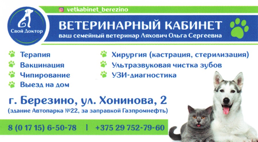 • Выезд ветврача на дом по г. Березино и Березинскому району.