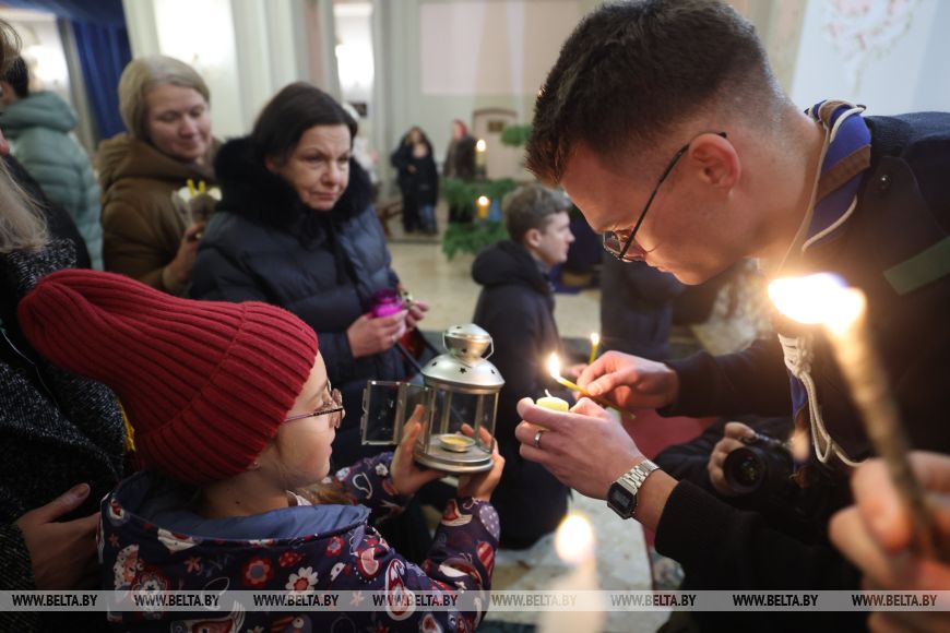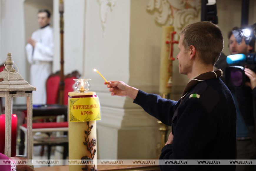 Как рассказали в костеле, получение Вифлеемского огня - в первую очередь способ единения верующих с Иисусом Христом. Он был получен в одной из негаснущих 15 лампад, которые висят над местом рождения Спасителя. Это еще и способ единения с другими народами, которые будут также радоваться во время праздника Рождества. Каждый год этот огонь символизирует и огонь Христа, который разжигает сердце человека. Когда тот самый младенец родился в Вифлееме, на небе появилась звезда, которая освещала путь другим людям. Это огонь мира и спокойствия. В этом году это особенно важно, потому что на Ближнем Востоке стоял вопрос: будет ли возможность передать этот огонь в связи с непростой обстановкой, которая там сложилась.