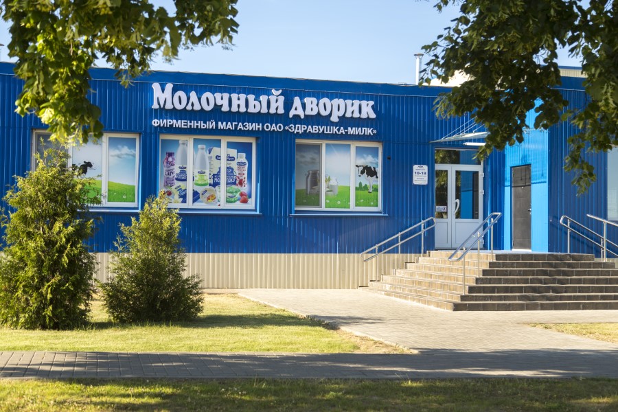 Первым серьезным клиентом для компании стал ТУП «Здравтрейд», который заказал изготовление вывесок для всех фирменных магазинов, расположенных в Березино, Крупках и Борисове. Предложение было неожиданным, но за него они охотно взялись. Далее последовал заказ на оклейку переездных торговых павильонов, а затем на комплексное оформление фасада торгового центра «Здравушка».