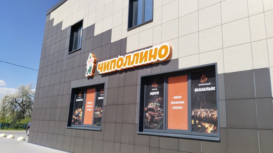 - Это был первый масштабный проект, которым мы до сих пор гордимся, -говорит Александр. - Ведь мы не только изготовили световую вывеску, но и зашили полностью фасад, заклеили окна и реализовали разноуровневую подсветку.