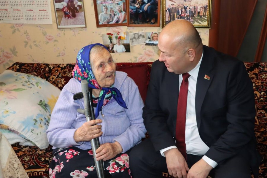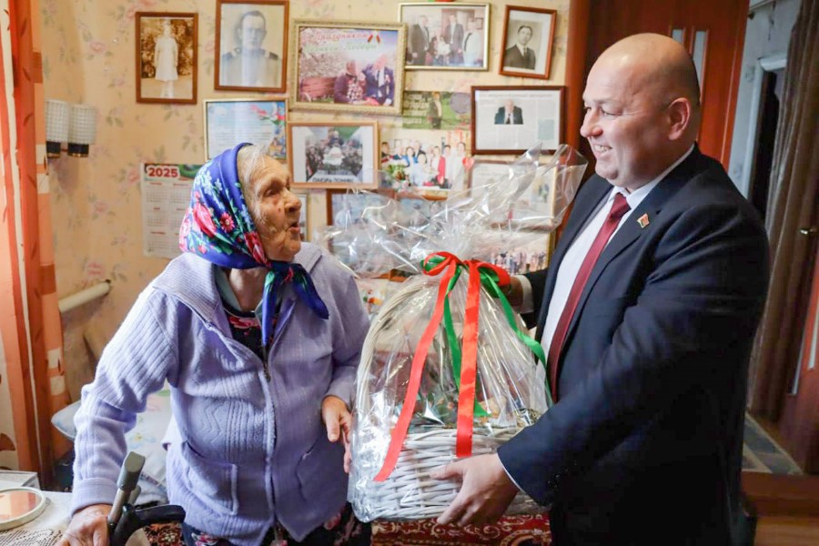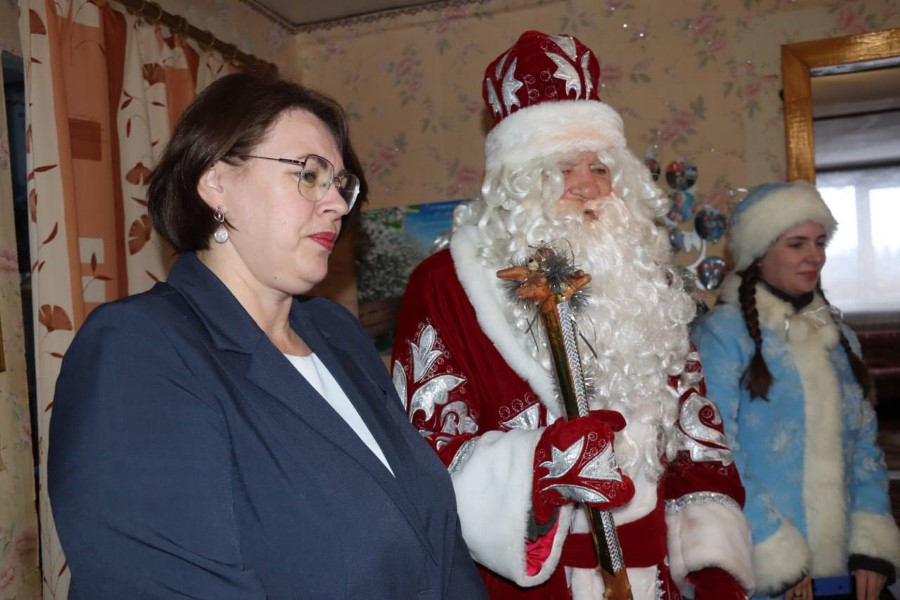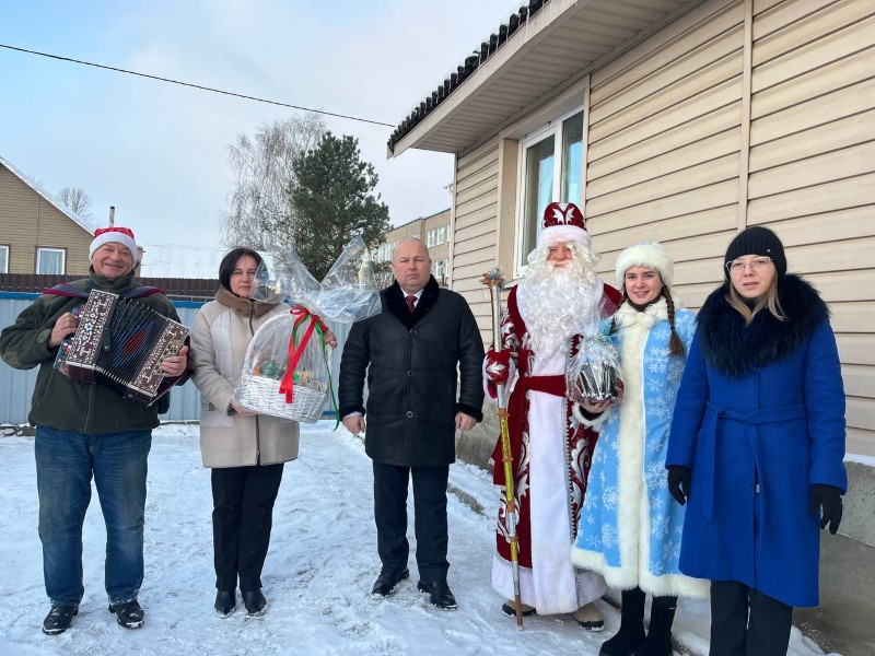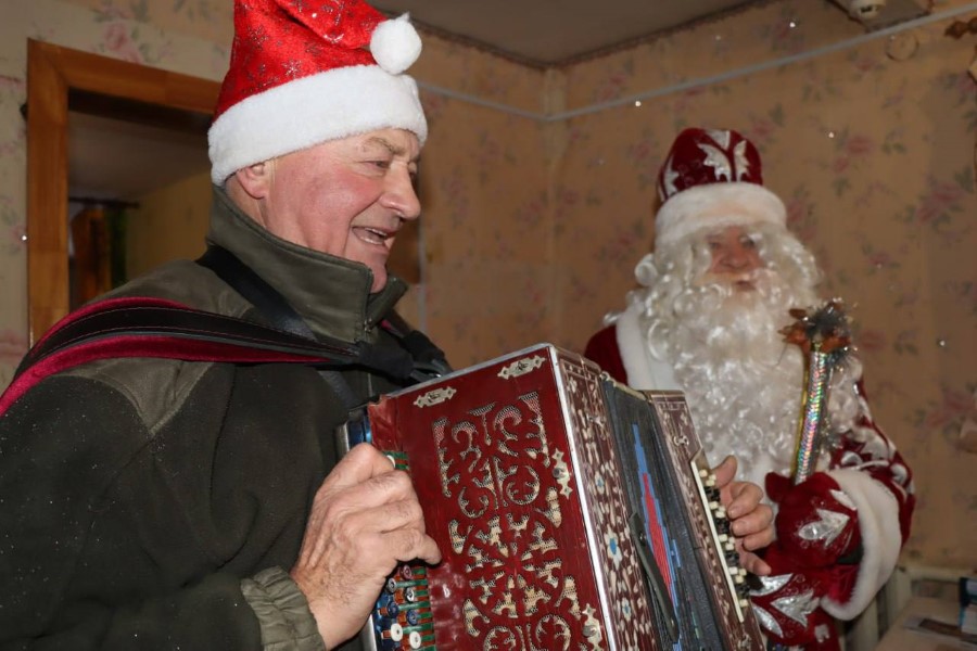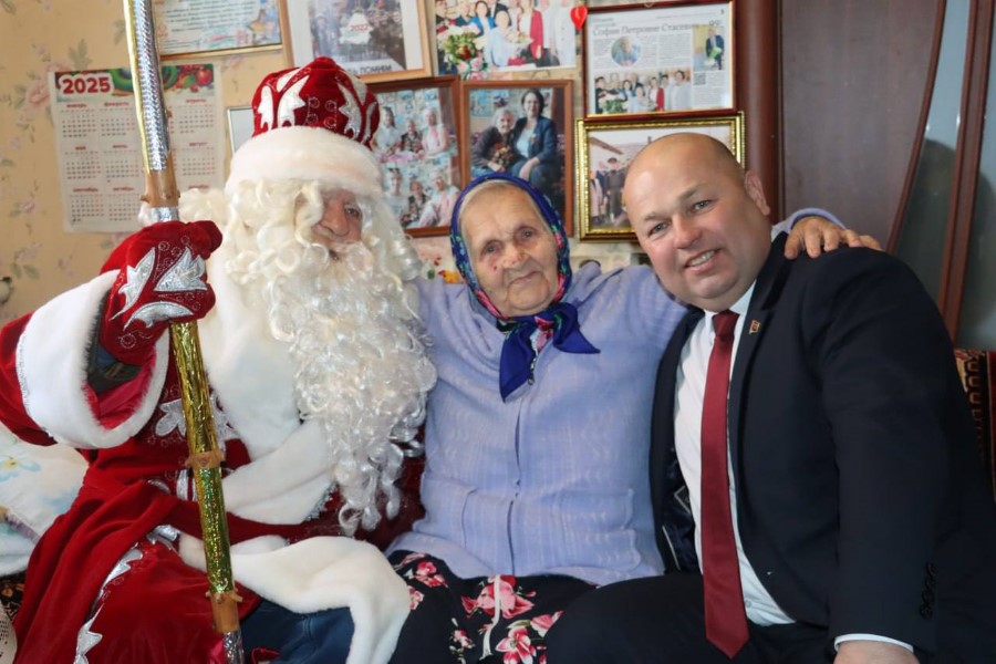 В рамках акции «От всей души» в гости к ветерану с новогодними поздравлениями и подарками приехали председатель Березинского райисполкома Андрей Соколовский, заместитель председателя Алеся Титова, начальник управления по труду, занятости и социальной защите Вероника Джигеро, директор Березинского ТЦСОН Елена Желудева, также Дед Мороз и Снегурочка.