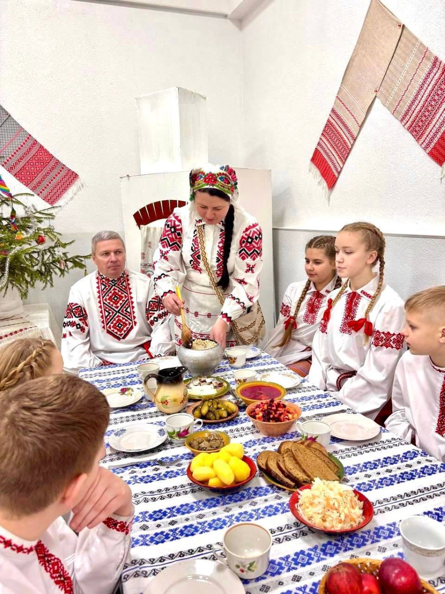 Як і даўней, на святочным стале стаяла 12 посных страў. А пад абрусам, па звычаі, ляжала сена - каб стол заўсёды «ламіўся» ад багацця, а гаспадары жылі ў дастатку.