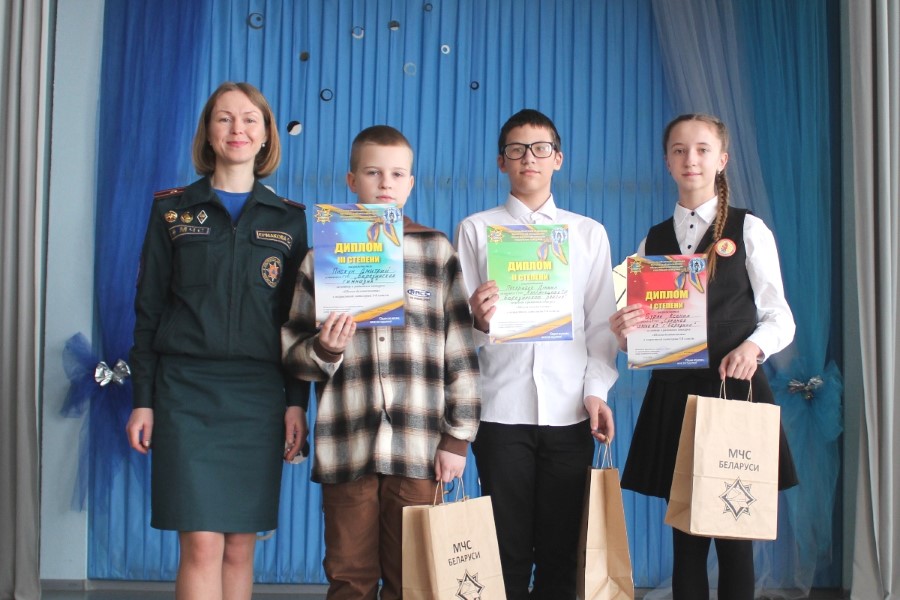 В категории 9-11 классы третье место у Буримского Ивана, ГУДО «Центр творчества детей и молодежи Березинского района»; диплом II степени «взяла» своим умом Путрик Валерия из ГУО «Богушевичская средняя школа Березинского района», первое место – у юного знатока ОБЖ из ГУО «Средняя школа №2 г. Березино» Симонова Матвея.