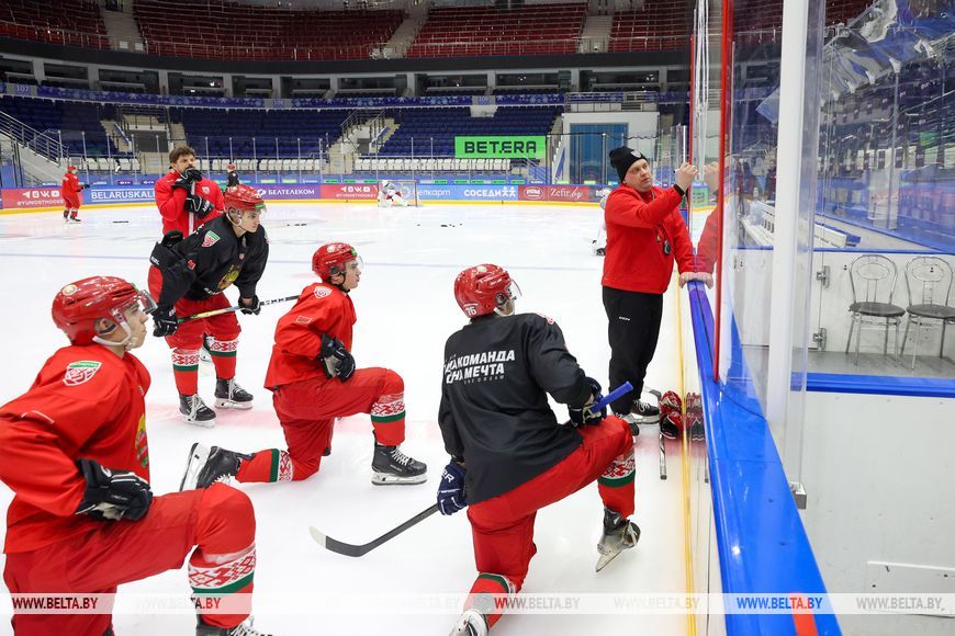 Молодежная сборная Беларуси по хоккею провела открытую тренировку на льду в преддверии Кубка Будущего, который пройдет с 4 по 7 февраля в Минске.