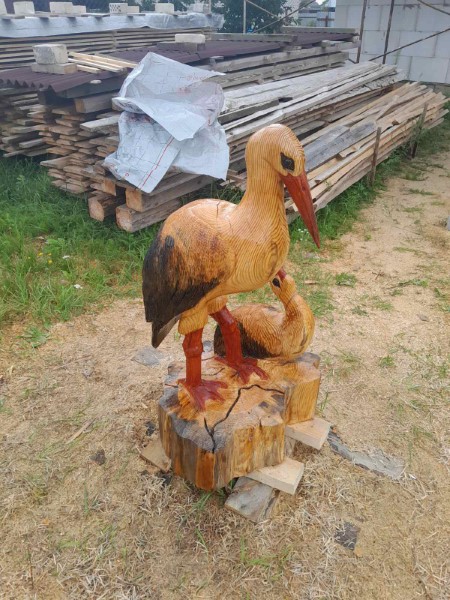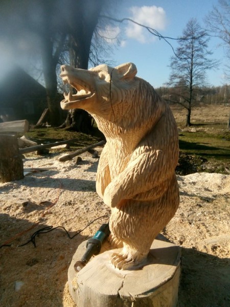А увидев кусок дерева, мастер сразу воображает, что из него можно сделать. У Игоря Семашкевича нет никаких чертежей или набросков будущей фигуры. Эскиз он держит в голове, виртуозно орудуя пилой и убирая все ненужное. Кроме пилы в ход идёт и топор, и болгарка. Когда примерные контуры скульптуры начинают вырисовываться, приходит черёд другого инструмента – стамески. С её помощью вытачиваются детали, скульптура обретает законченный вид. Потом следует пропитка, покраска, покрытие лаком. Маленькие фигуры мастер может сделать за день, а над большими приходится поработать подольше.