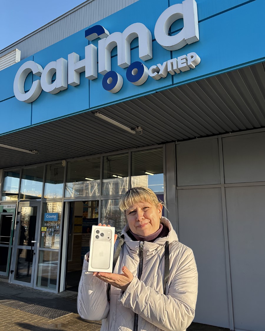 Анжела работает контролером‑кассиром в торговом комплексе БГЭУ. Магазины сети «Санта» она посещает почти каждый день и очень довольна ассортиментом. В тот день зашла в магазин на улице Якубова: нужно было купить продукты ко дню рождения мамы. Обычный кофе NESCAFE в её чеке оказался не таким уж и обычным – именно он помог выиграть iPhone 17 Pro.