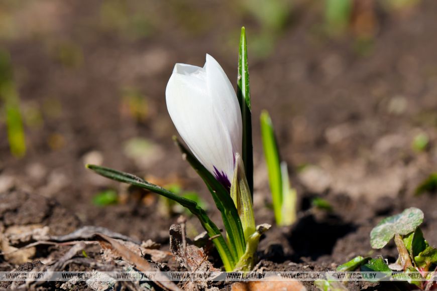 Погода в столице радует теплом. На клумбах распускаются яркие крокусы, которые украшают город.