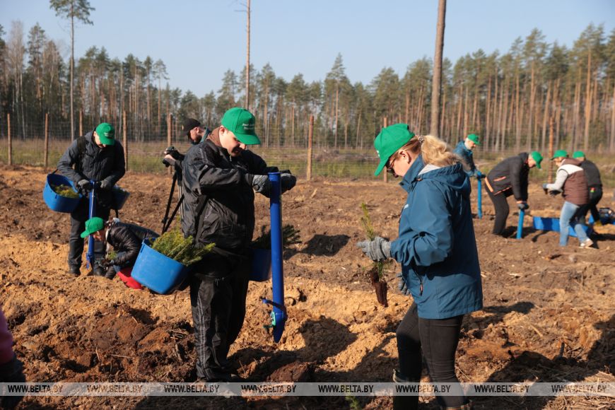 Участники акции высадили 5,5 тыс. саженцев сосны и ели на площади 2 га.