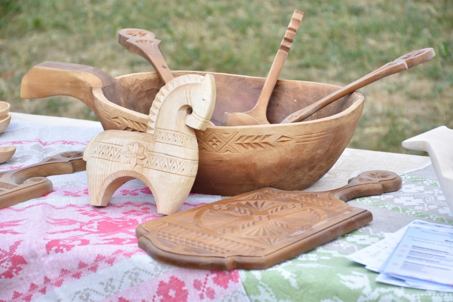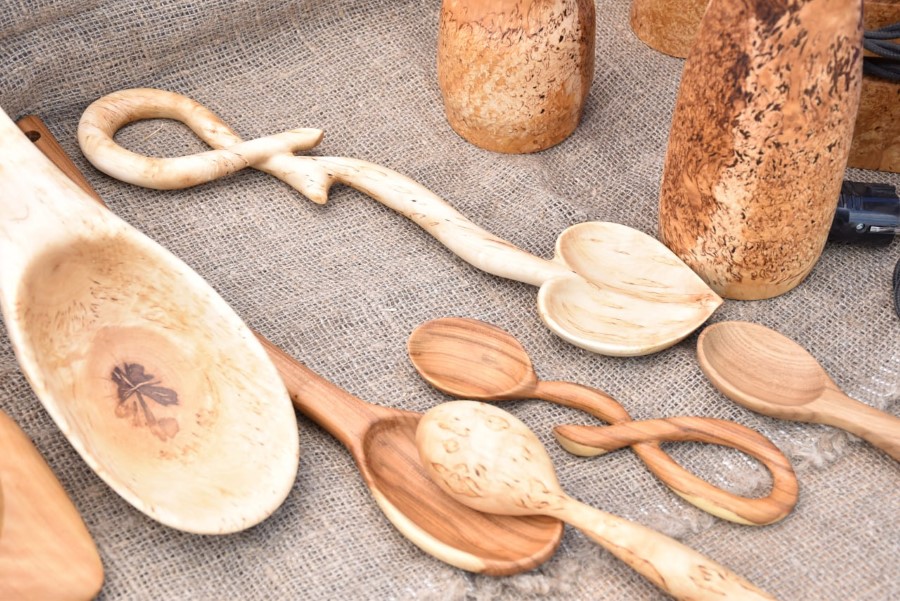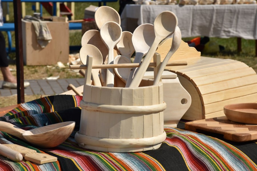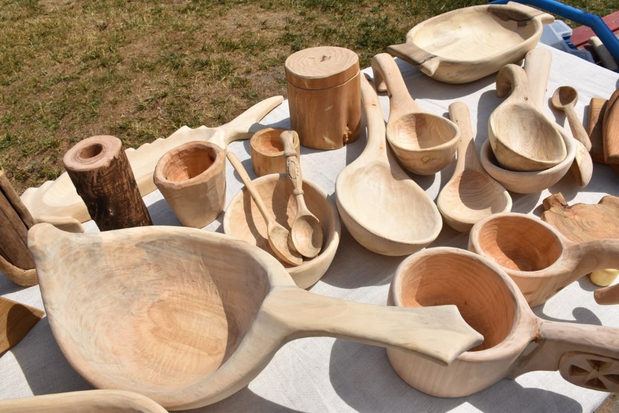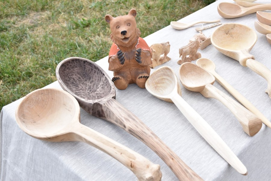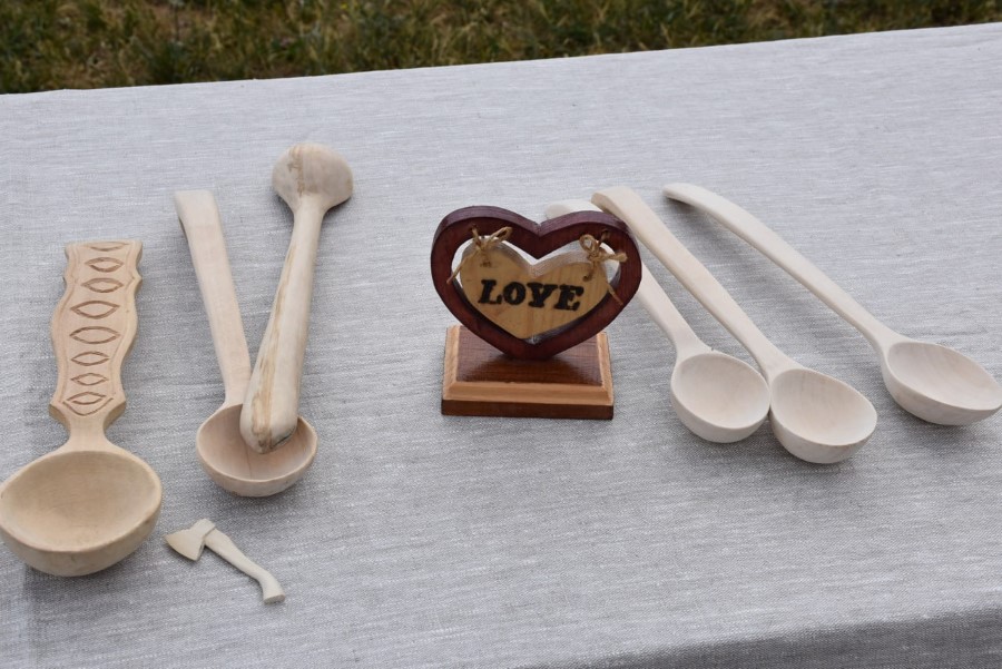 – Я двадцать лет занимаюсь резьбой по дереву, говорит мастер, – всему учился сам. Коллекция у меня большая от бочек до мини скворечников. Я только ложек тут продал свыше 30 штук ! Они у меня особенные - один раз взял больше не отпустишь.