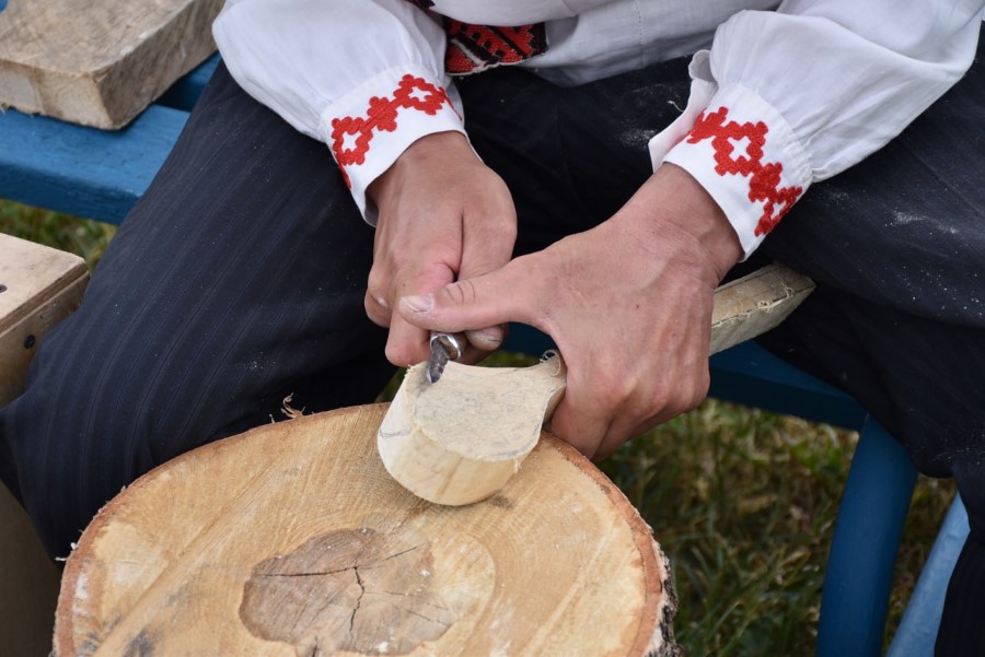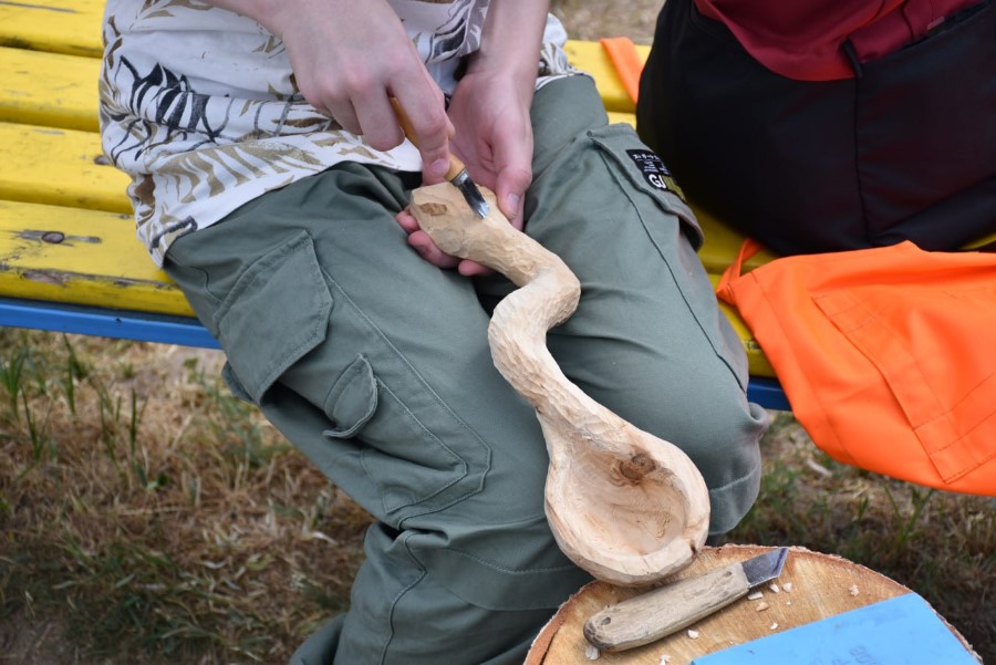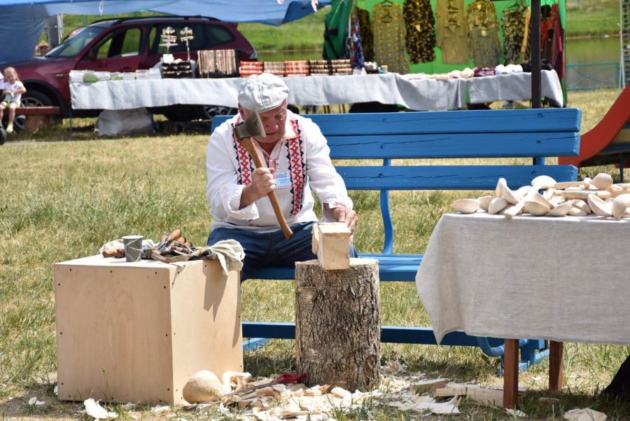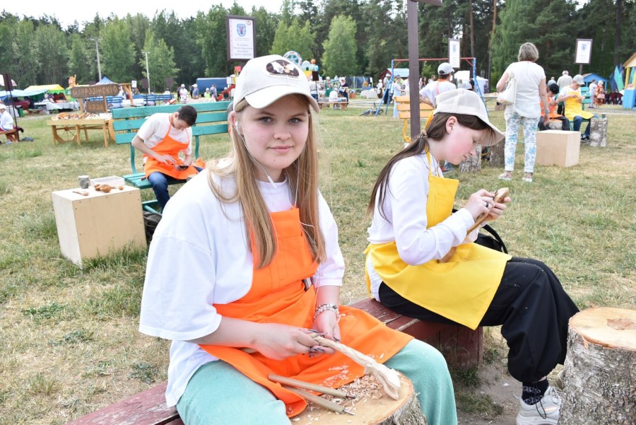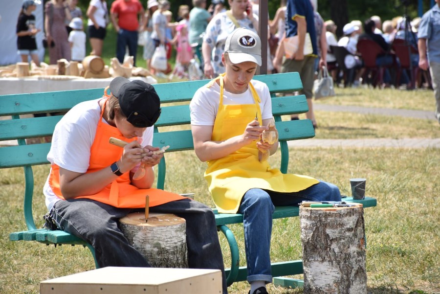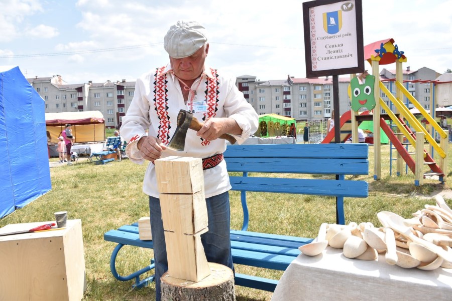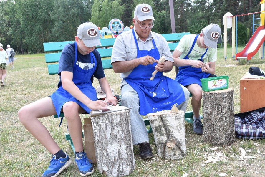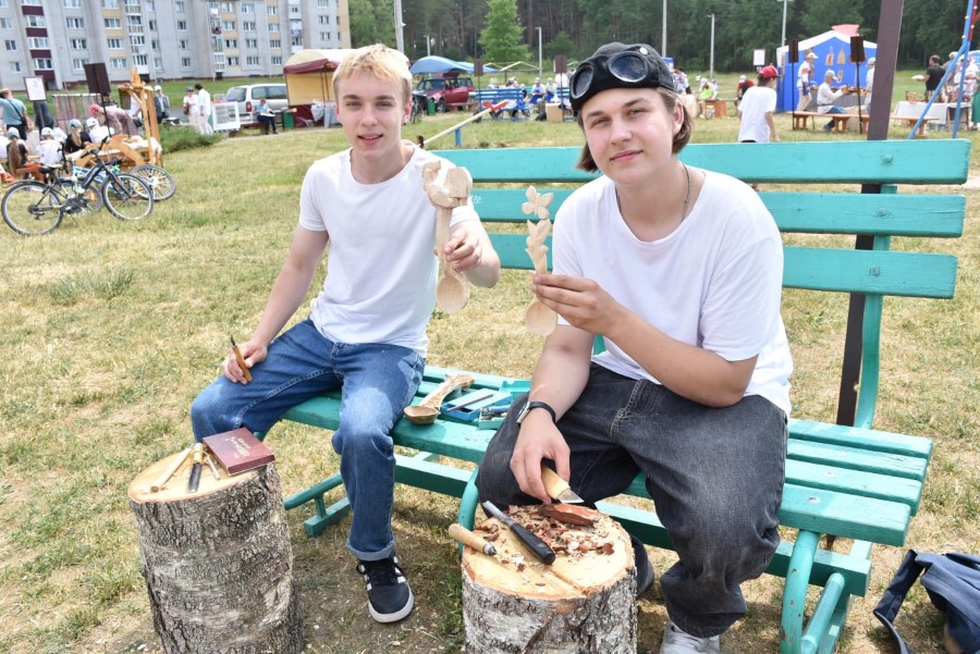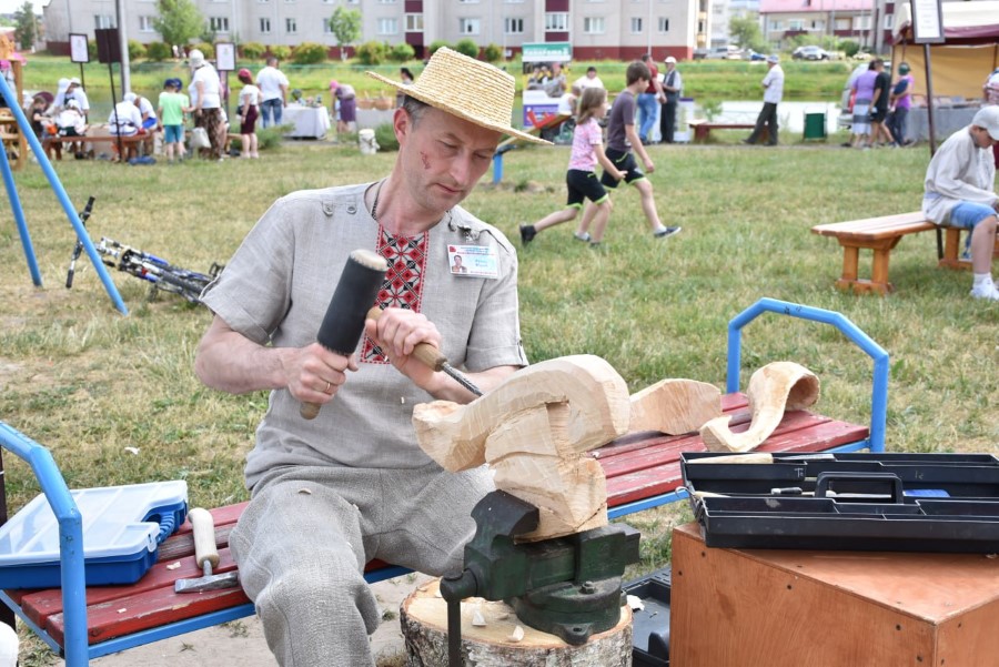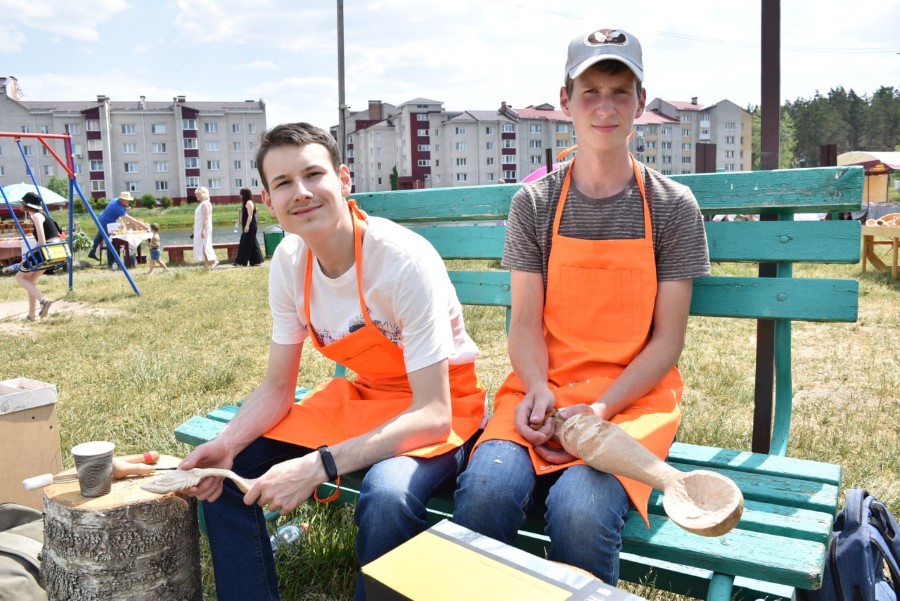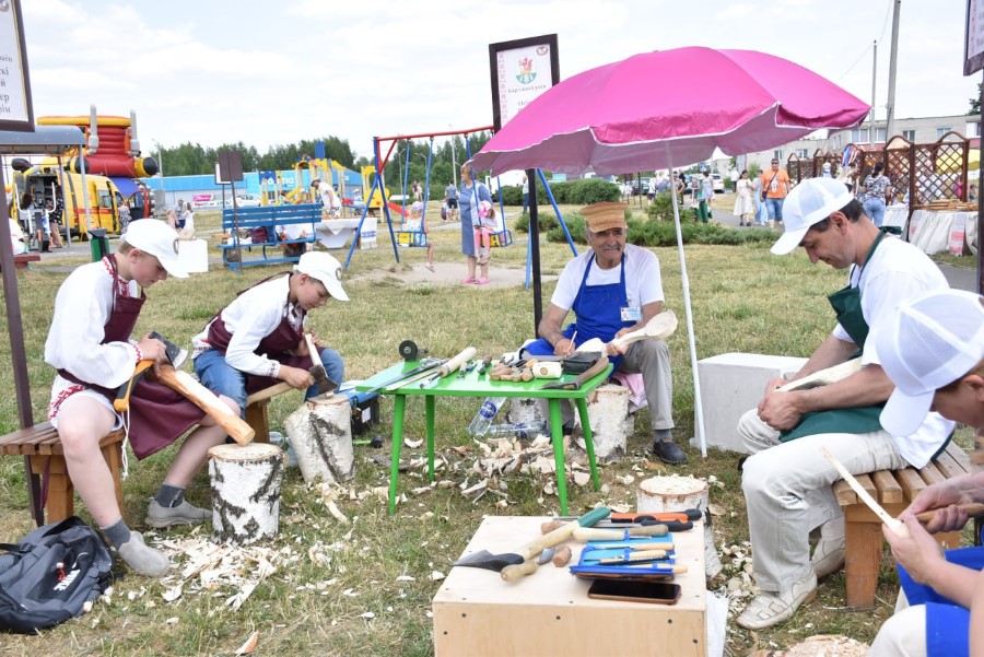 На протяжении трех часов березинцы наблюдали за творческой работой мастеров. За тем, как обычное полено в их руках превращается в ложку.
