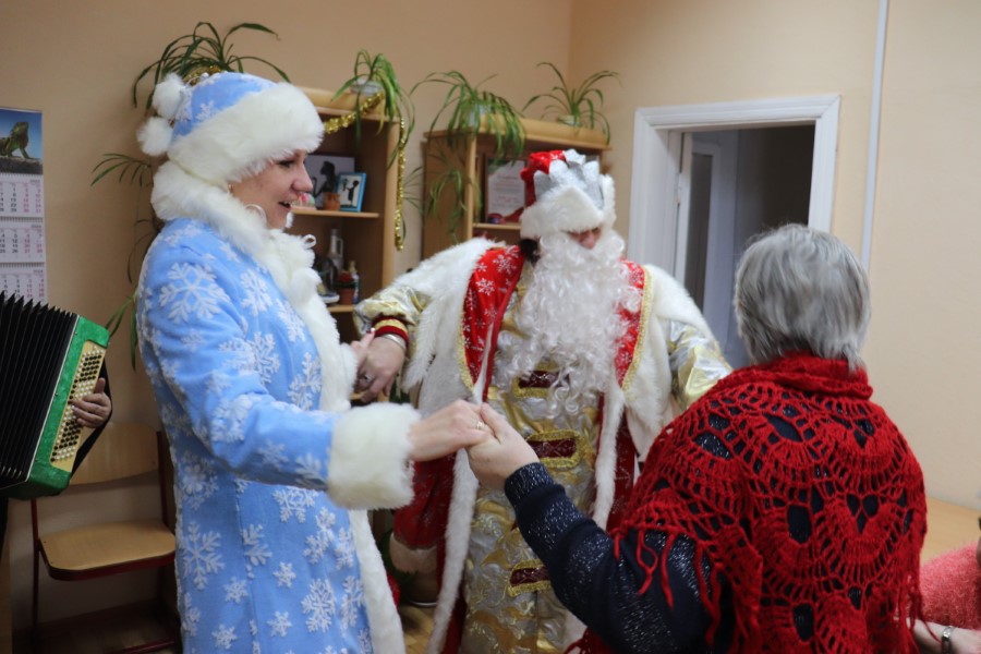 В рамках акции «От всей души» посетителей отделения дневного пребывания для граждан пожилого возраста Березинского ТЦСОН сегодня навестили Дед Мороз и Снегурочка.