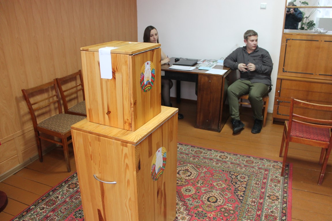 У пакоі побач з абсталяванымі “кабінкамі” стаіць асноўная апячатаная ўрна для датэрміновага галасавання. Побач – падрыхтаваныя ўрначкі для галасавання на даму, з якімі камісія 27 лютага завітае да тых, хто не змог па розных прычынах з’явіцца на ўчастак.